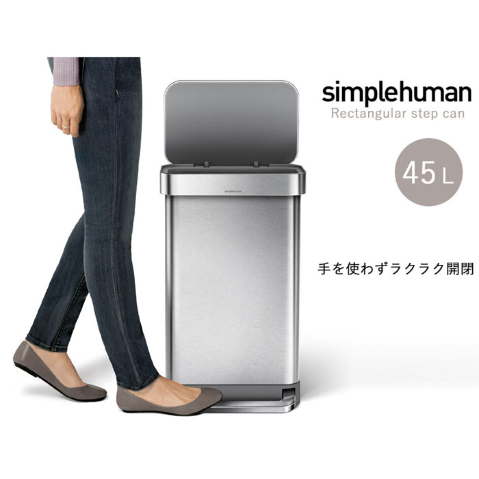 【正規販売店】 simplehuman レクタンギュラーステップカン 45L シルバー/シンプルヒューマン【送料無料】